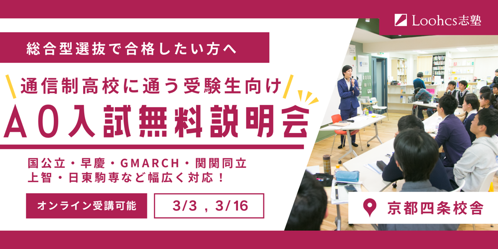 総合型選抜・AO入試、推薦入試専門塾「Loohcs志塾京都四条・烏丸校」にて、大学に合格するための情報が知れる「通信制高校生向け 総合型選抜・AO入試無料説明会」を実施!