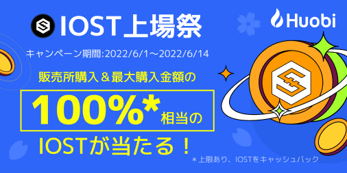 フォビジャパン株式会社(所在地:東京都港区、代表取締役社長:関 磊、以下「フォビジャパン」)は、IOSTの取扱いを6/1(水)より開始いたします。こちらを記念し、【新規上場記念】IOST上場祭を実施いたします。 IOST新規上場により、Huobi Japanの取扱銘柄数は20種類となります。