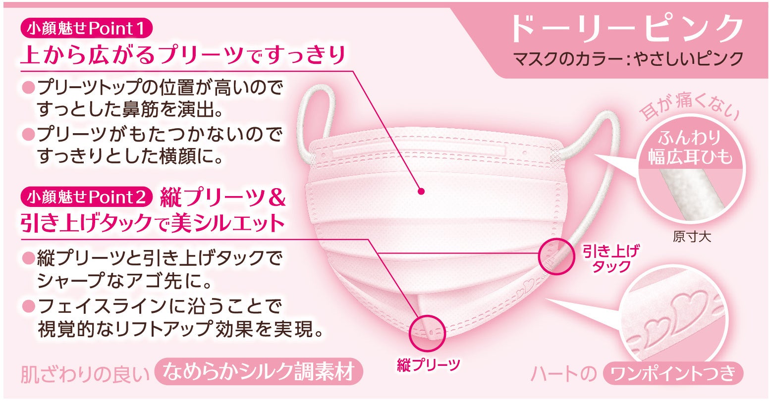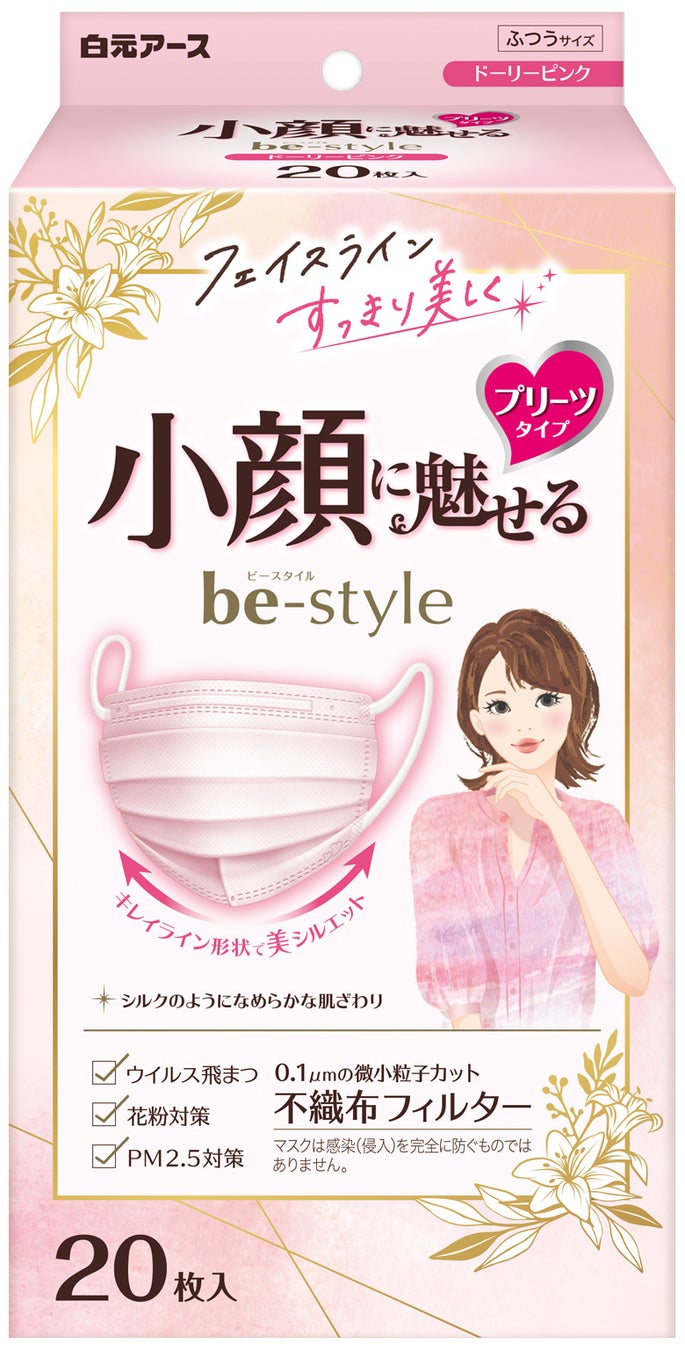 白元アース株式会社(本社:東京都 台東区、社長:吉村一人)は、フェイスラインをすっきり美しく、小顔に魅せるプリーツタイプのマスク『ビースタイル プリーツタイプ ふつうサイズ ドーリーピンク20枚入』を8月25日より限定発売いたします。