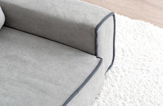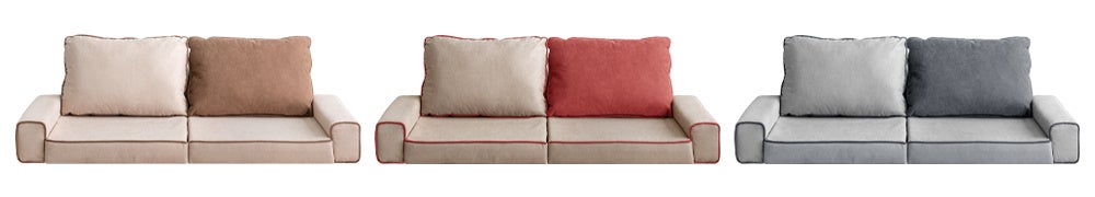 ソファ全体のヘム(縁の部分)はカラーをクッションの裏面のカラーに合わせており、単調にならないカジュアルなデザインに仕上げております。