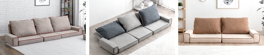サイズ | 【2P】 外寸:幅180x奥行68~108x高さ62cm / 座面高:13.5cm 【3P】 外寸:幅240x奥行68~108x高さ62cm / 座面高:13.5cm 【追加パーツ1P】 外寸:幅60x奥行68~108x高さ62cm / 座面高:13.5cm 【追加パーツオットマン】 幅76x奥行51x高さ13.5cm |