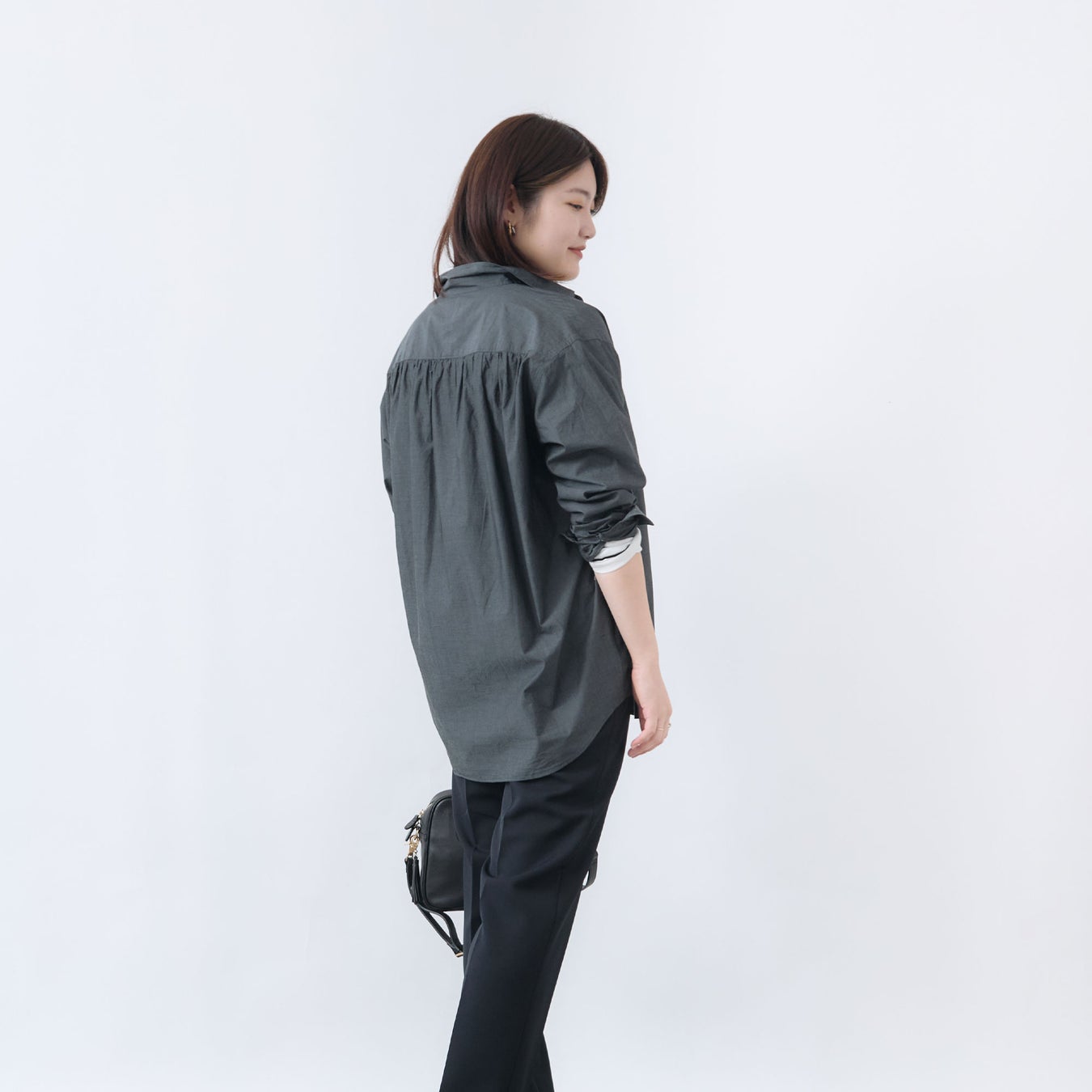 シャンブレーらしい奥行きのある表情で、一枚で着ても華やかさがあります。