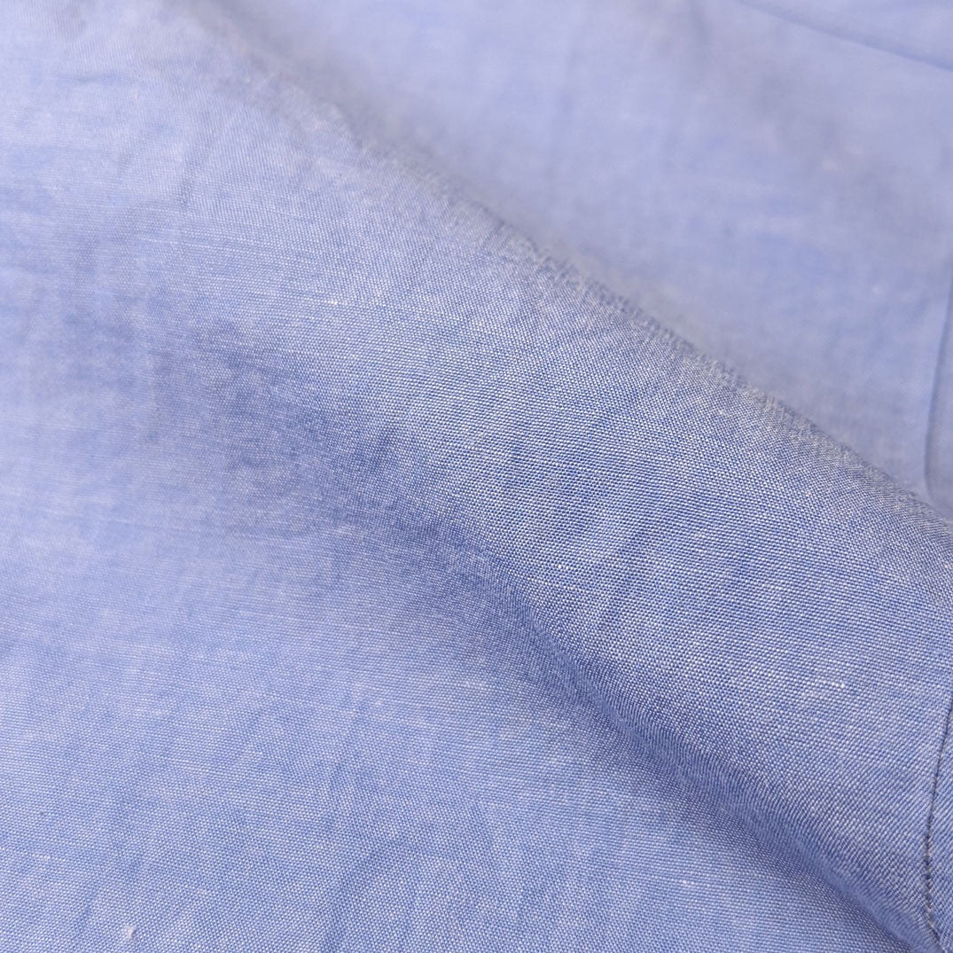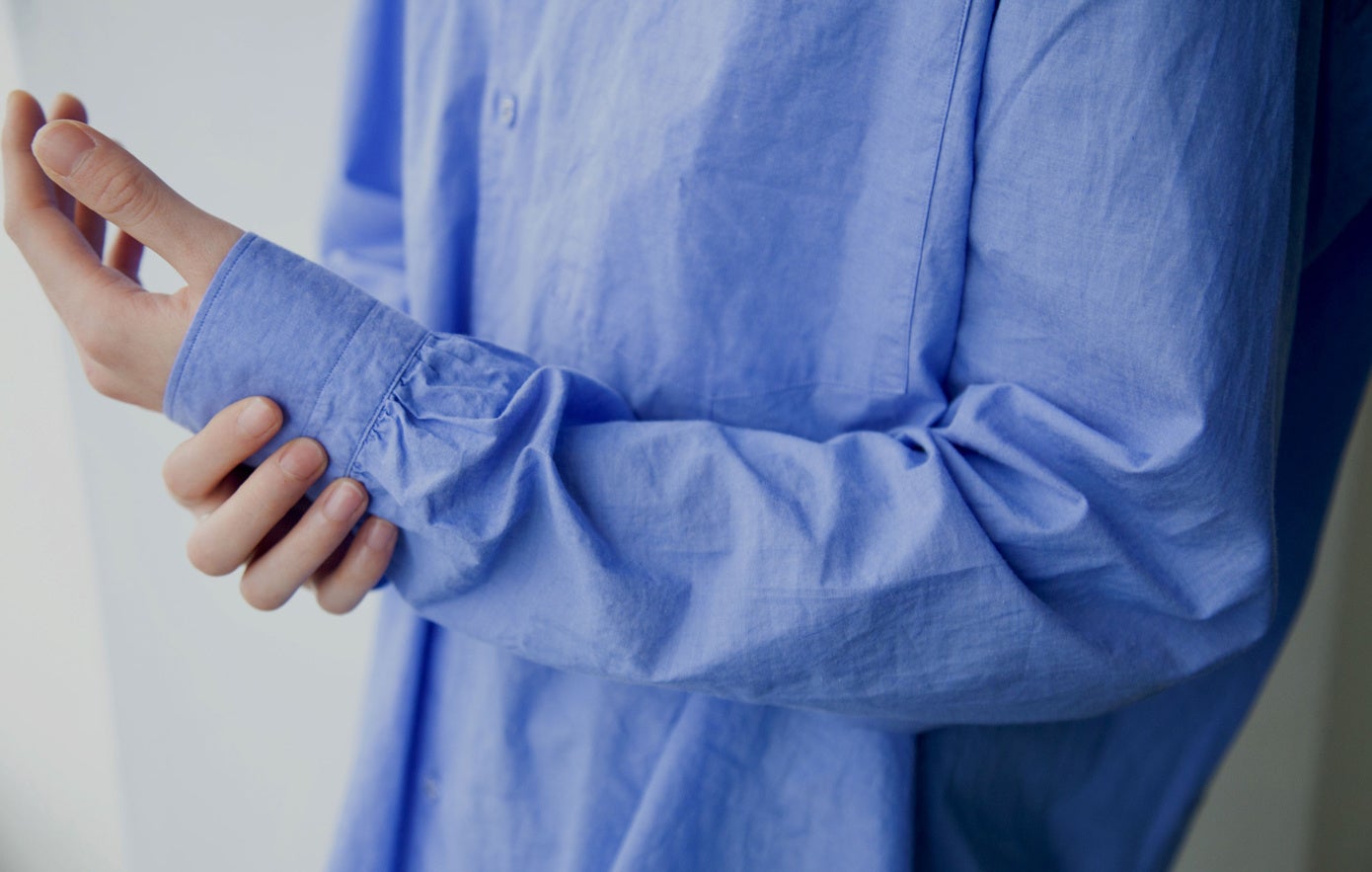 「このシャンブレーの生地は、私自身が好きなのと、青は男女問わず似合う色として考えているので、今回の企画で採用しました。白いシャツは市場にたくさんあるので白は作らないという、あえてのチャレンジでもあります。