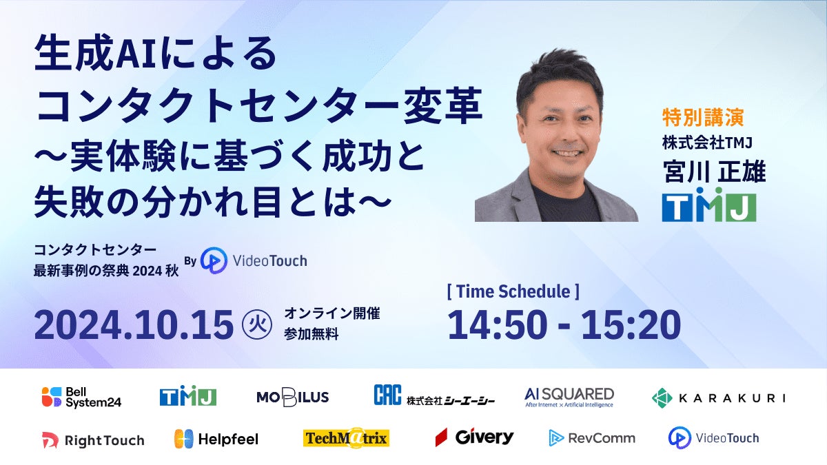 TMJ、Video Touch株式会社が主催するオンラインカンファレンス『コンタクトセンター 最新事例の祭典2024秋』に登壇