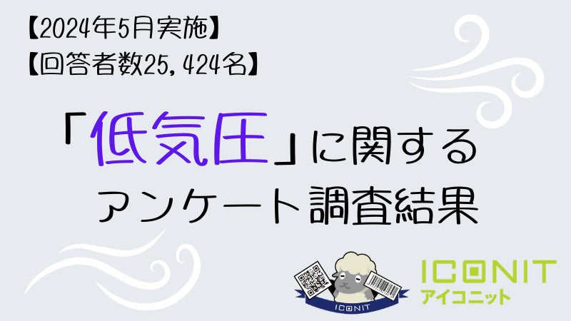株式会社メディアシークが提供する累計3,600万DL超スマートフォンアプリ「QR/バーコードリーダー・アイコニット」内で、アプリユーザーを対象に毎日実施しているアンケート「アイコニット・リサーチ」において、「低気圧」に関するアンケートを25,424名に対して2024年5月8日に実施いたしました。