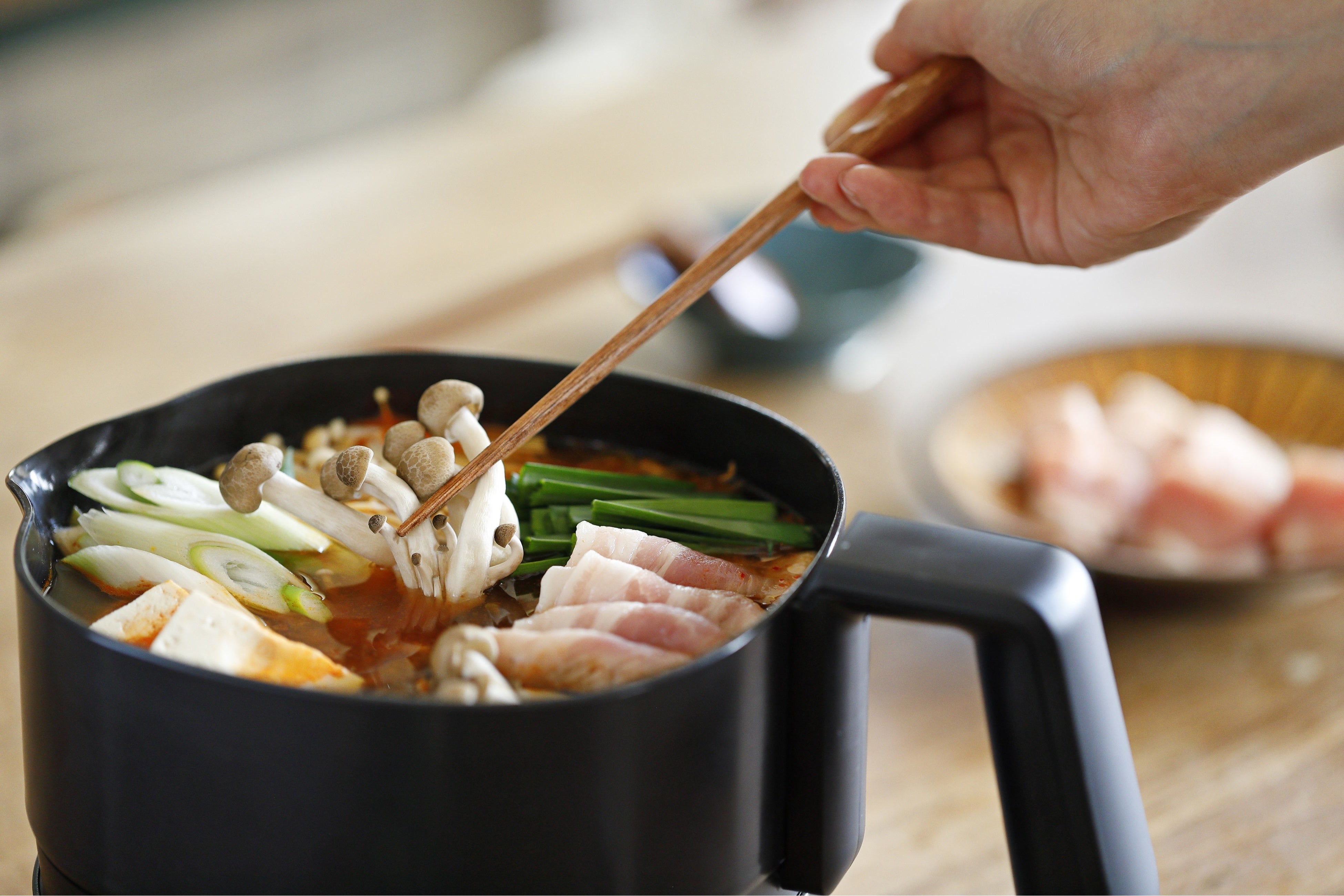 ケトルとしても調理なべとしても使用でき、作る・食べる・保存まで1台で完結。