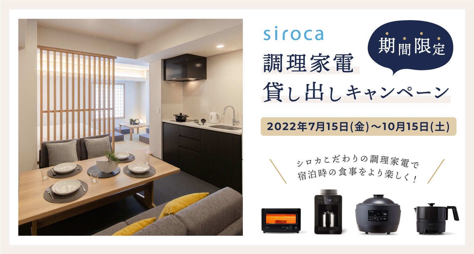 シロカ株式会社(東京都・千代田区)は、株式会社コスモスホテルマネジメント(東京都・港区)が運営するアパートメントホテル「MIMARU東京 上野EAST」にて、2022年7月15日から2022年10月15日までの期間限定でシロカ製品の貸し出しキャンペーンを実施します。