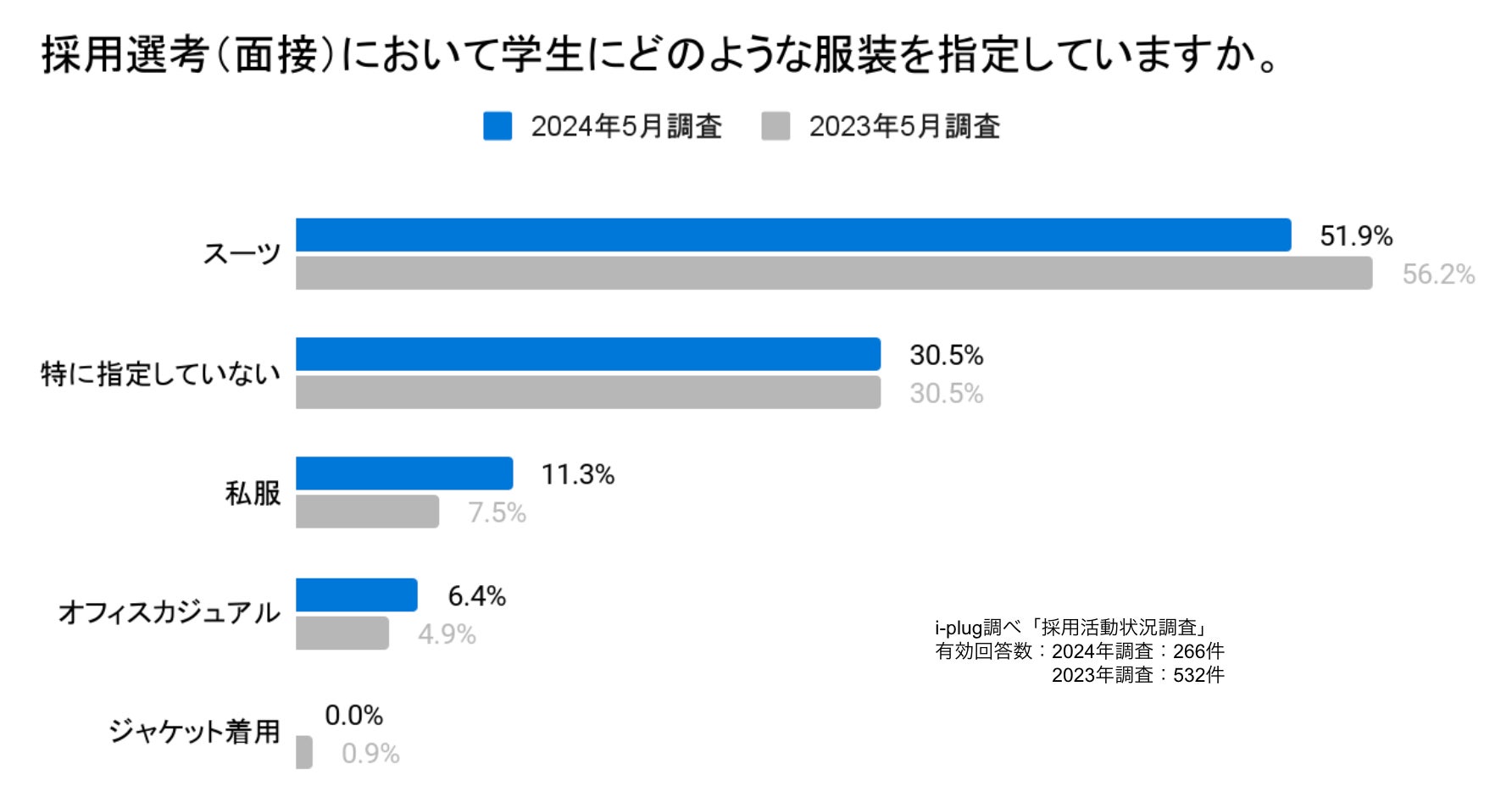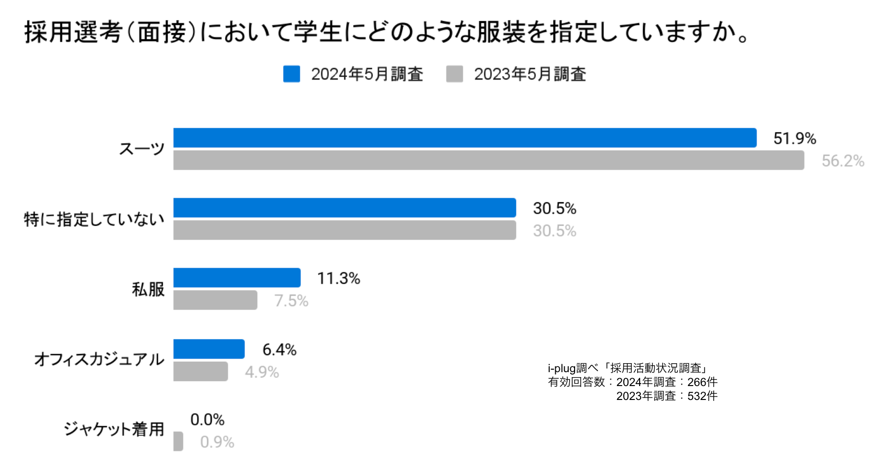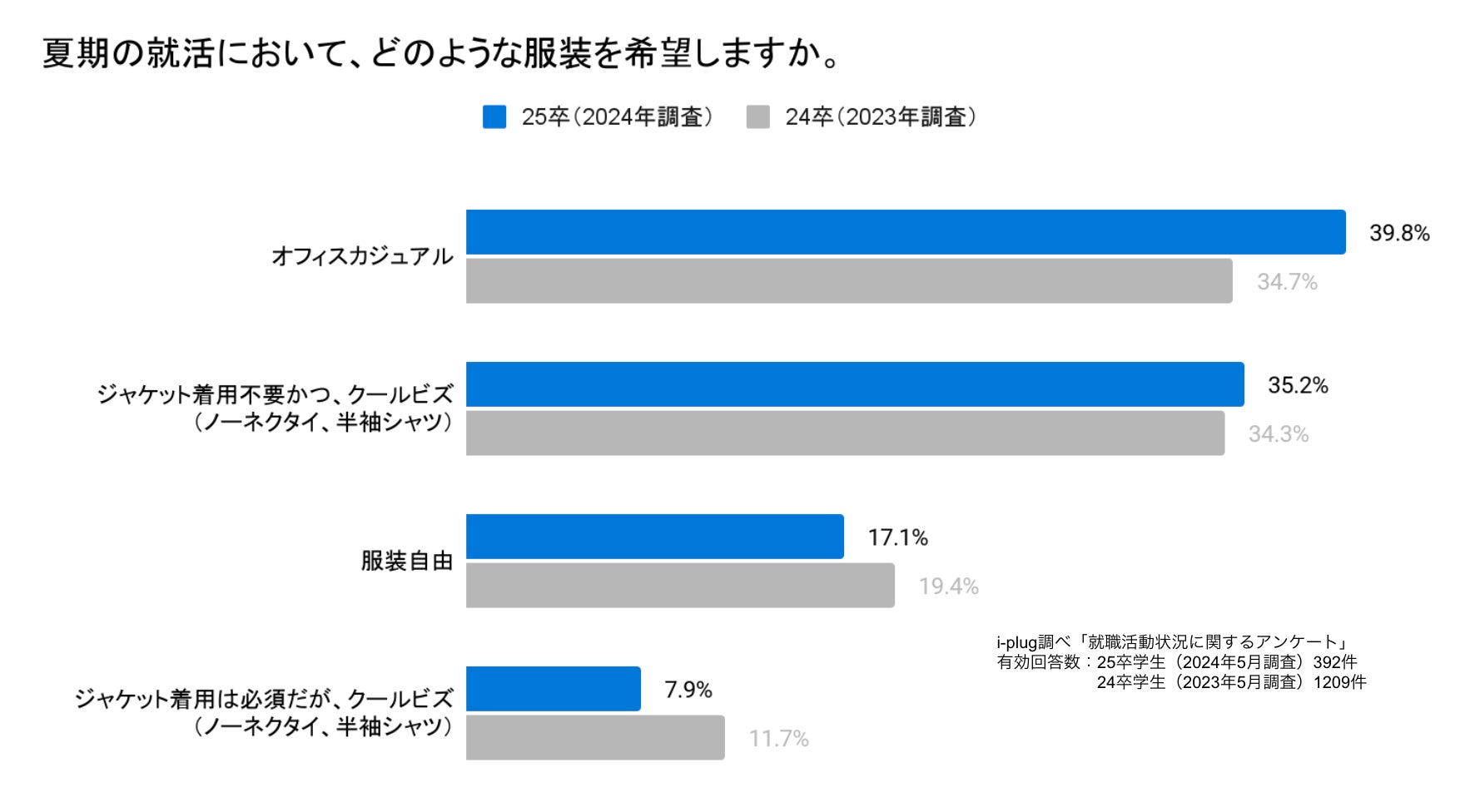 気象庁の見解(※1)によると、2024年夏(6〜8月)は「暖かい空気に覆われやすいため、気温は全国的に高い」と予想されています。昨年の日本の夏(6〜8月)の全国の平均気温は、1898年の統計開始以降で最も高くなりました。今後も季節に適した格好での就活を希望する学生が増加すると考えられます。