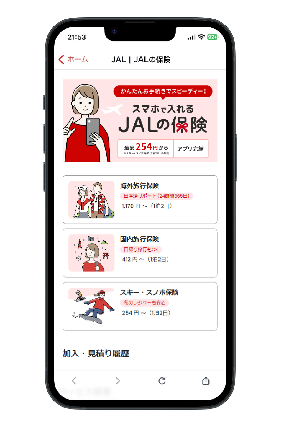 初登場、JALマイレージバンクアプリでチューリッヒ保険会社の旅行保険を販売開始
