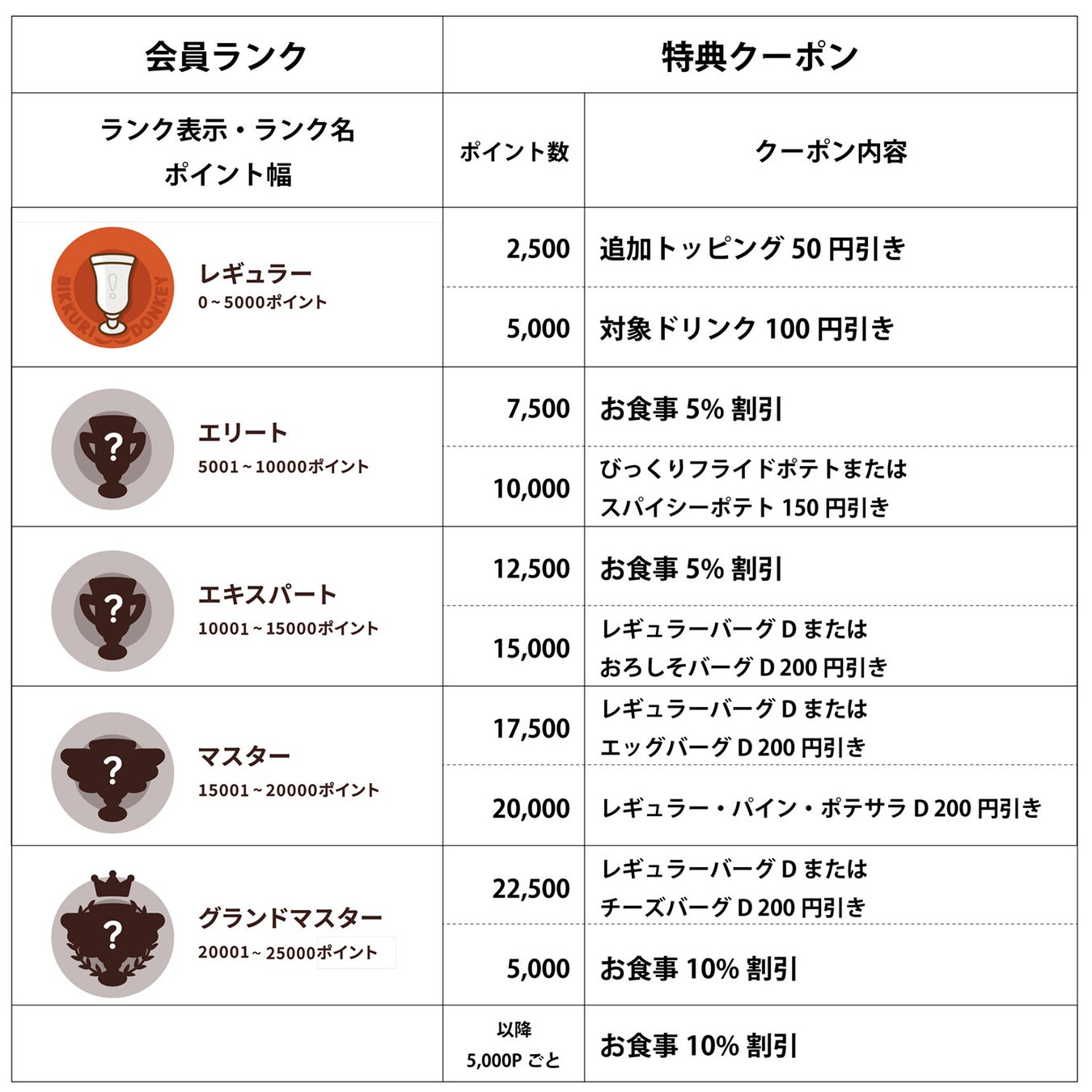 獲得ポイントに応じてレギュラーからグランドマスターへと会員ランクがアップしていきます。