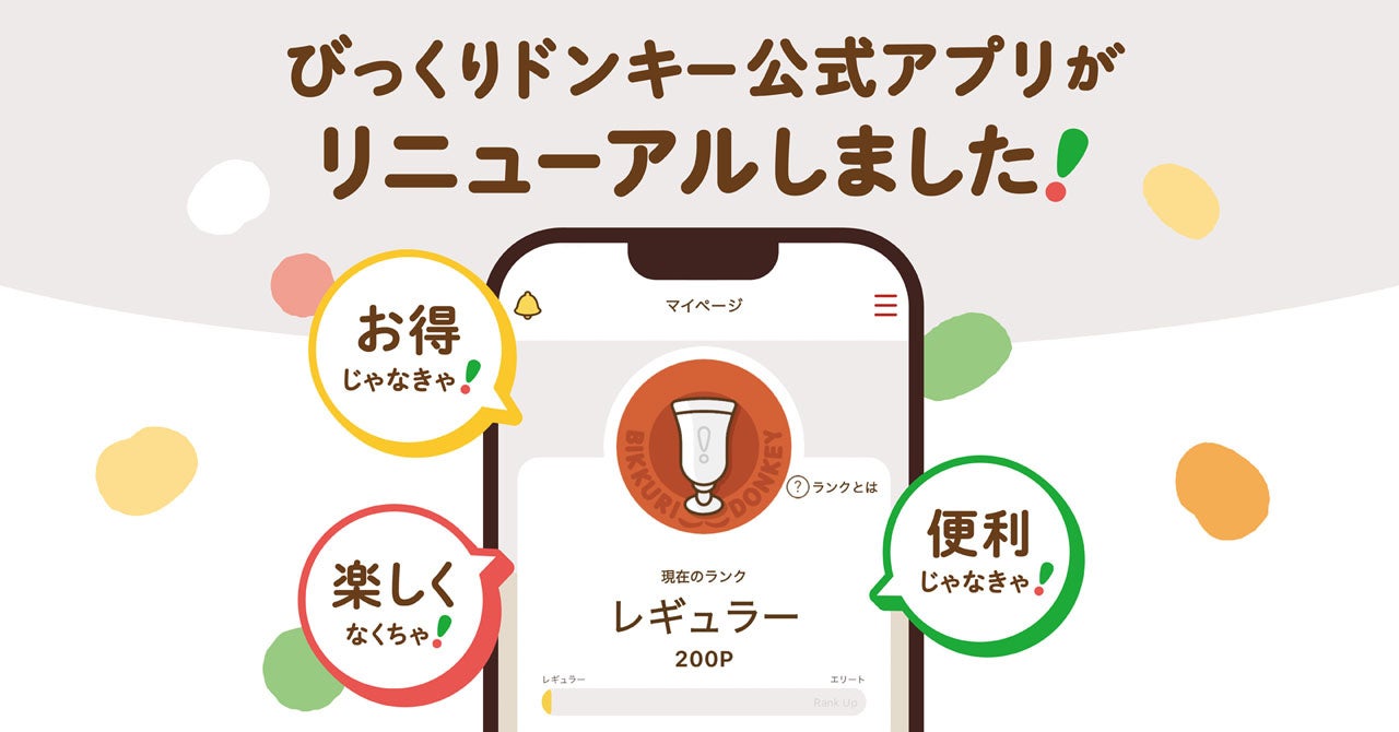ぜひ、この機会にリニューアルされた公式アプリをご活用いただき、「びっくりドンキー」をよりお得で便利に楽しくご利用ください。