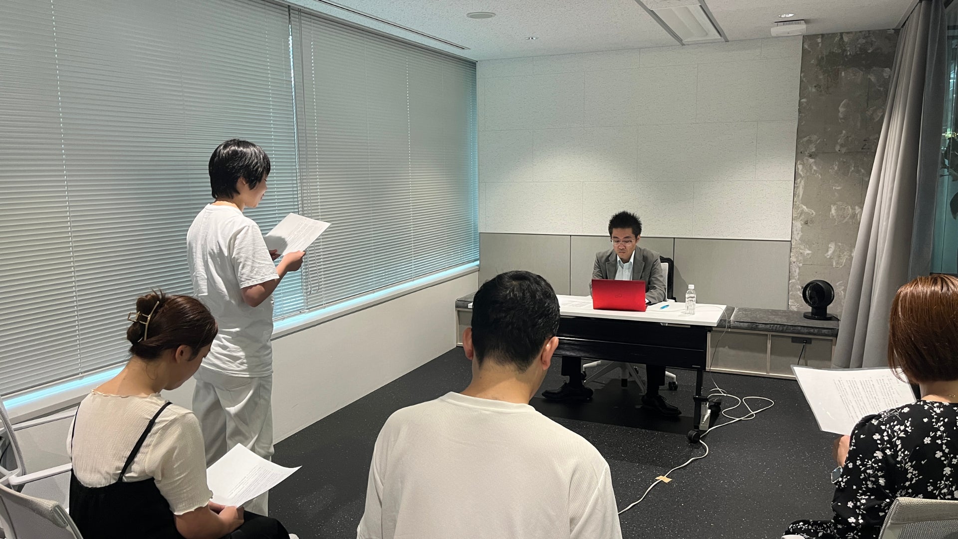 今回のオーディションでは一次審査でボイスサンプルによる音源審査を実施。合格者を対象にした二次審査では声優事務所代表の藤田氏を審査員に迎え、対面による演技審査が行われました。今回のオーディションは複数名を同時に審査する形式で実施。同じオーディション参加者の演技を目の当たりにしながらの演技は緊張感が感じられました。