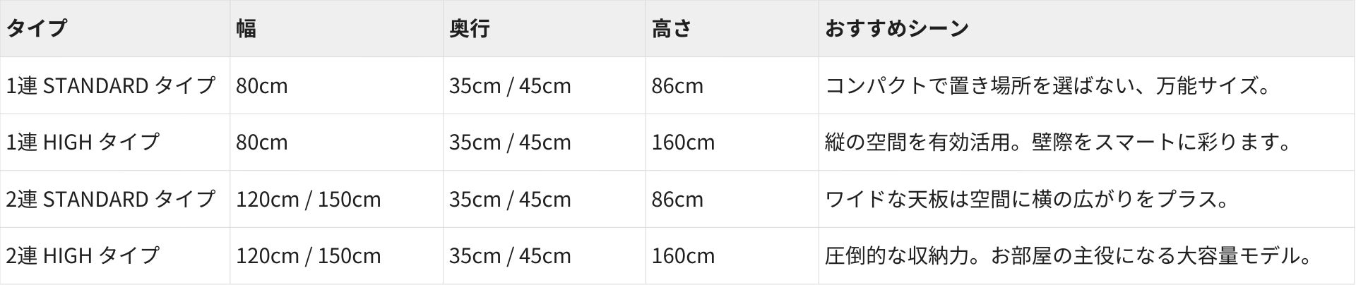 ②暮らしや用途に合わせて選べる「4つのサイズ展開」