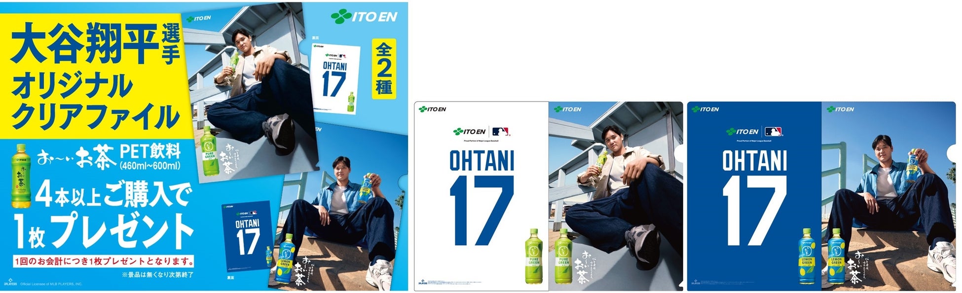 製品の発売と同時に量販店などで対象の「お〜いお茶」製品を4本以上購入した方に、大谷翔平選手のオリジナルクリアファイルをプレゼントする「大谷翔平選手のオリジナルクリアファイルがもらえるキャンペーン」を展開します。オリジナルクリアファイルは、「お〜いお茶 PURE」シリーズのキービジュアルと、大谷翔平選手の背番号が描かれたオリジナルデザインです。