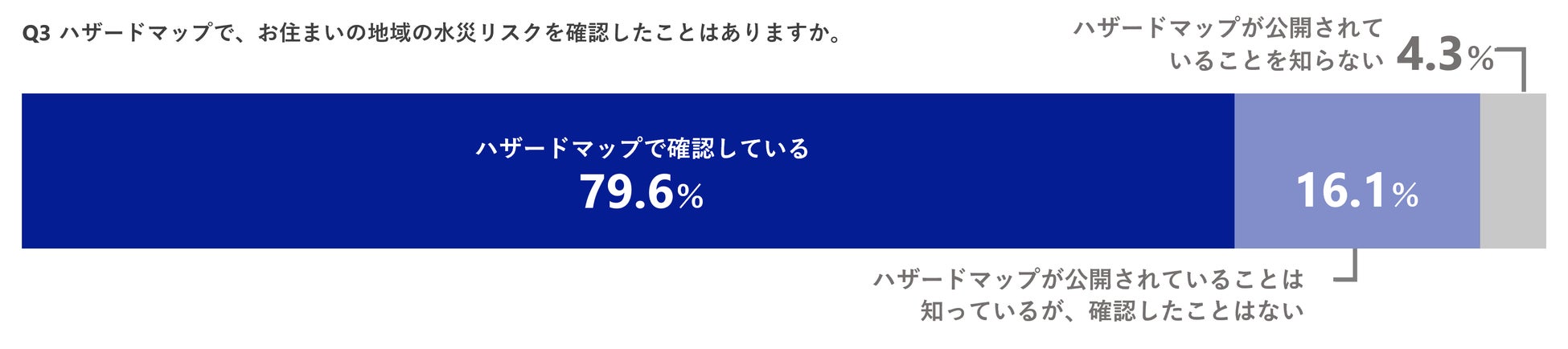 3.お住まいの地域の水災リスクを「ハザードマップで確認している」と答えた方は79.6%。
