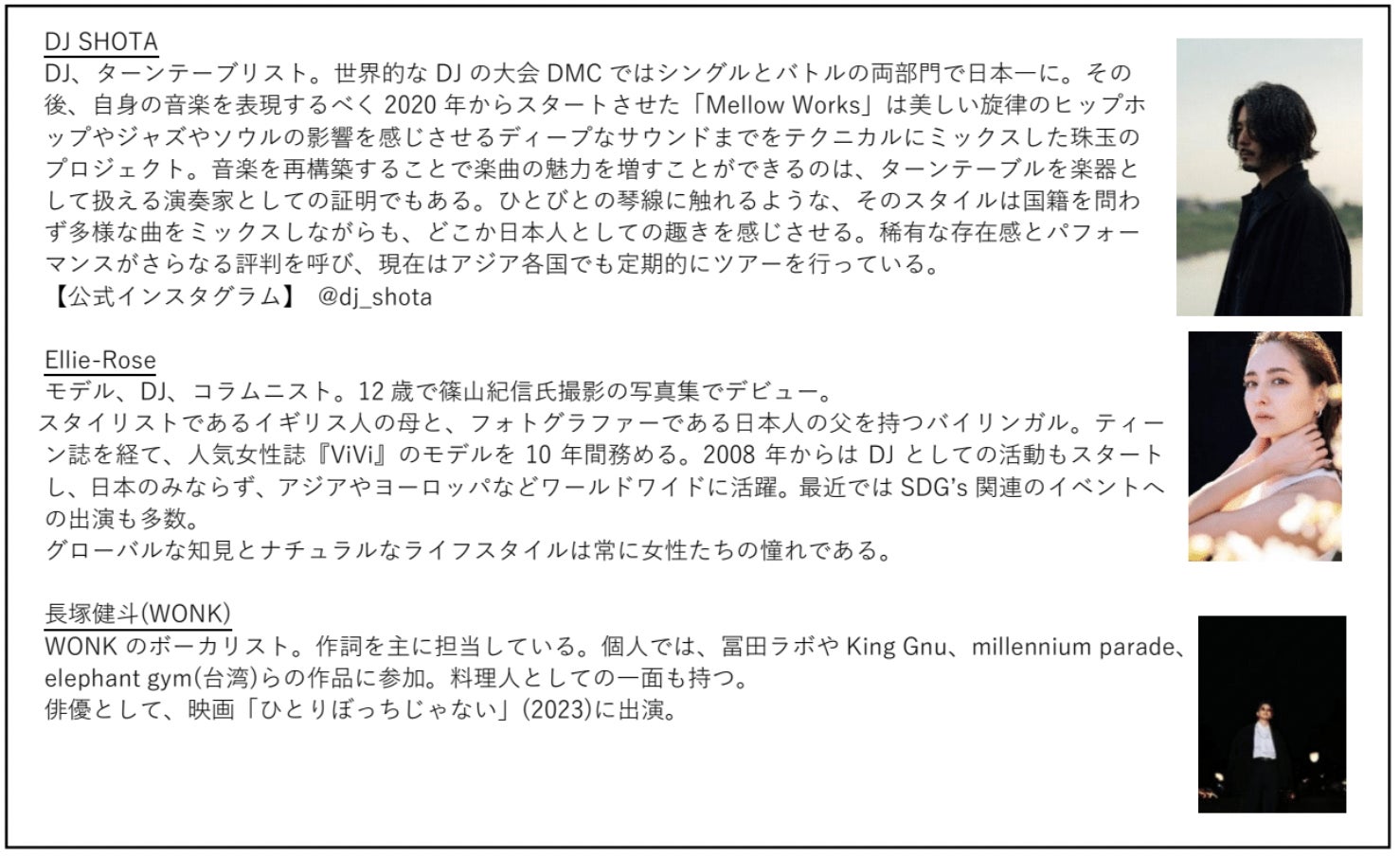 「SCRAMBLE MUSIC SHOW」が「SHIBUYA SCRAMBLE COLLECTION SPRING」とコラボレーション。ファッションショーに華を添える豪華なDJとして、DJ SHOTA、Ellie-Rose、長塚健斗(WONK)らが登場し会場を盛り上げます。ランウェイではDJ SHOTAがモデルの動きに合わせた音楽演出も行います。