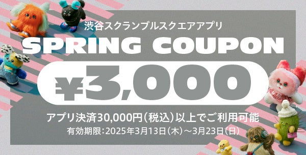 また、渋谷スクランブルスクエアアプリでのお買いもの・お食事にご利用いただける「SPRING COUPON」を3 月13日(木)~3月23日(日)の11日間限定で配信します。ぜひ、この機会に春のショッピングをお楽しみください。