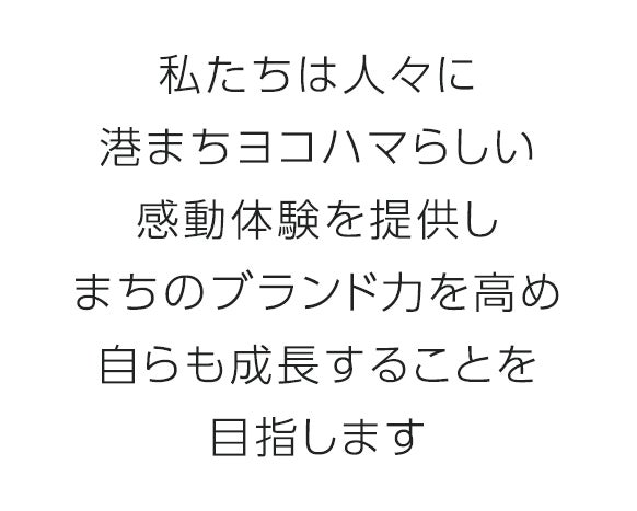 ロマンチックで都会的で美しい横浜の街を誇りに思っていただけるよう、皆様と同じ目線にたって感動を体験、提供をしながら、成長していくという行動指針を示しています。