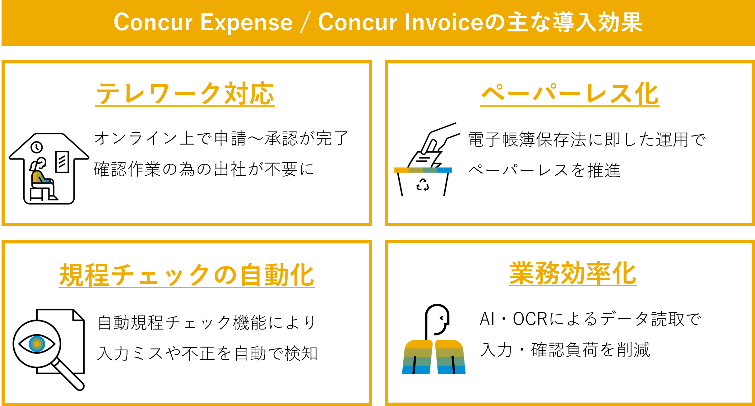 「Concur Expense」「Concur Invoice」の両方を同時期に導入することで、よりスムーズな業務効率化・ガバナンス強化が実現します。