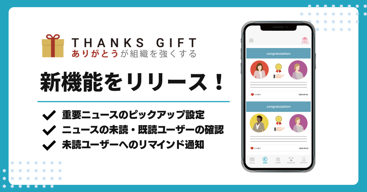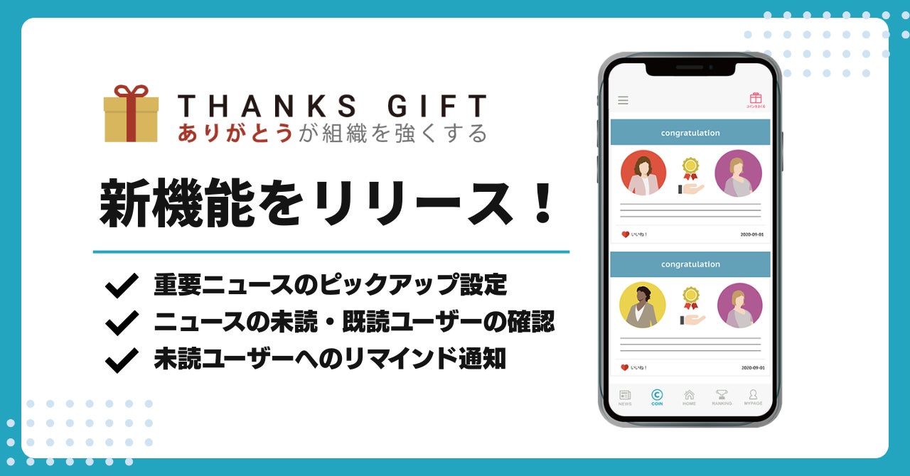 「THANKS GIFT」、ニュースの閲覧を促進する新機能をリリース!ピックアップ設定とリマインド通知で、組織の情報浸透をサポート。