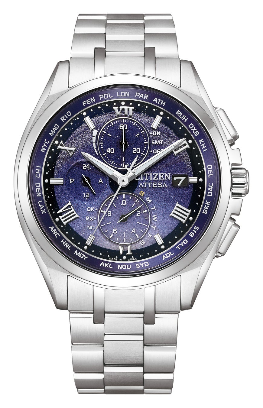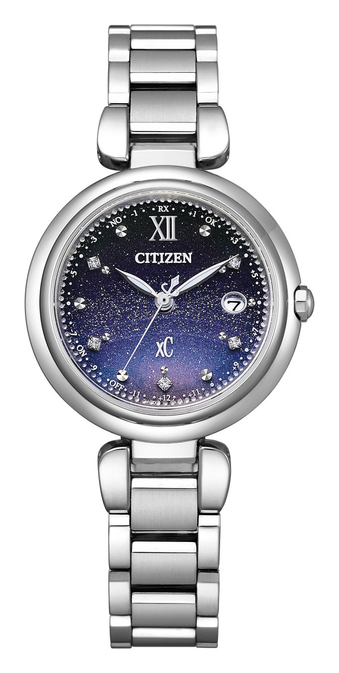 両モデルとも、ケースとバンドにはデュラテクトプラチナを使用し、透明感のあるブルーの文字板を組み合わせています。『シチズン アテッサ』は、12時位置方向にパールのプリントを何層にも重ね、夜に現れる虹のアーチをさりげなく溶け込ませています。『シチズン クロスシー』は、6時位置方向に「Night Rainbow」をイメージした何層ものラメを円弧上に重ねました。インデックスには、空に輝く星々に見立てた5ポイントのラボグロウン・ダイヤモンドとカットパーツをセットしています。