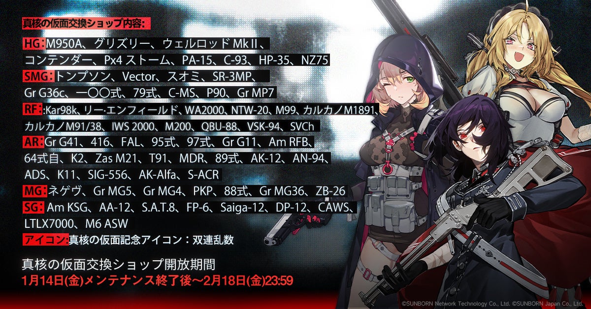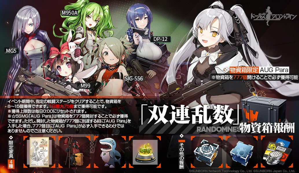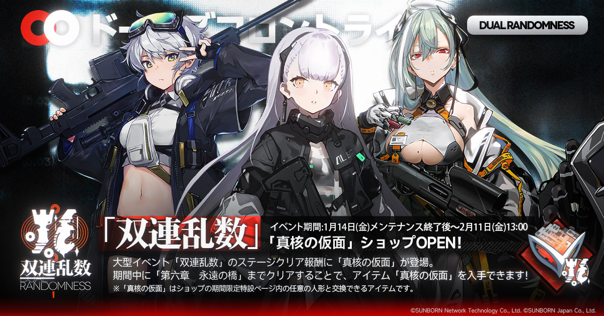 株式会社サンボーンジャパンは、スマホ向け戦略型シミュレーションゲーム『ドールズフロントライン(以下、「ドルフロ」)』において、本日1月14日(金)メンテナンス後より開催の大型イベント、「双連乱数」の追加情報をお知らせいたします。