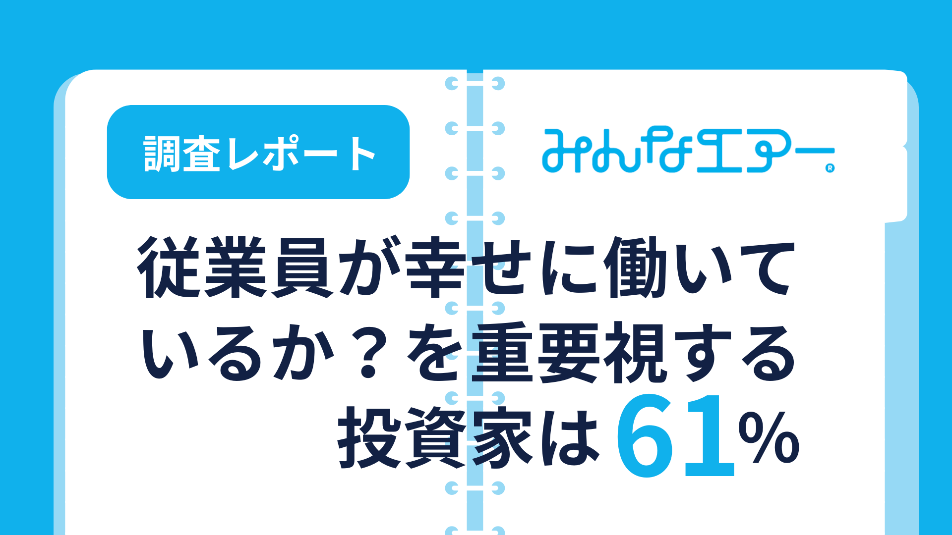 投資家の61.0%が、投資先選びとして「従業員が幸せに働いているか」を重要視すると回答その理由、「企業の継続性を左右する指標だから」など