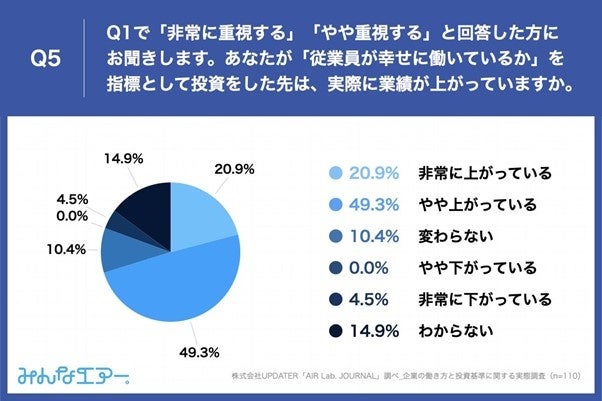 〜従業員の幸せな働き方を指標として投資した結果、70.2%が業績アップ〜