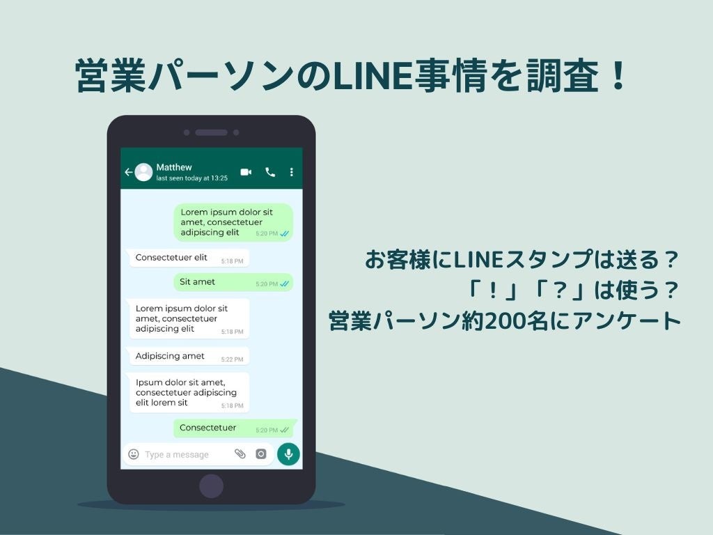 そこで今回着目したのが「スタンプを使うか否か」です。ビジネスは礼儀作法、ビジネスマナーが求められます。ましてや、営業というコミュニケーションを生業にする仕事は特にです。しかし、丁寧だから正解とも限らないのが営業の難しさです。気軽に楽しくやりとりができるのもスタンプの魅力ですが、実際現場の営業パーソンはどのようにお客様とやりとりをしているのでしょうか?営業パーソンのLINE事情をテーマにアンケート調査を実施いたしました。