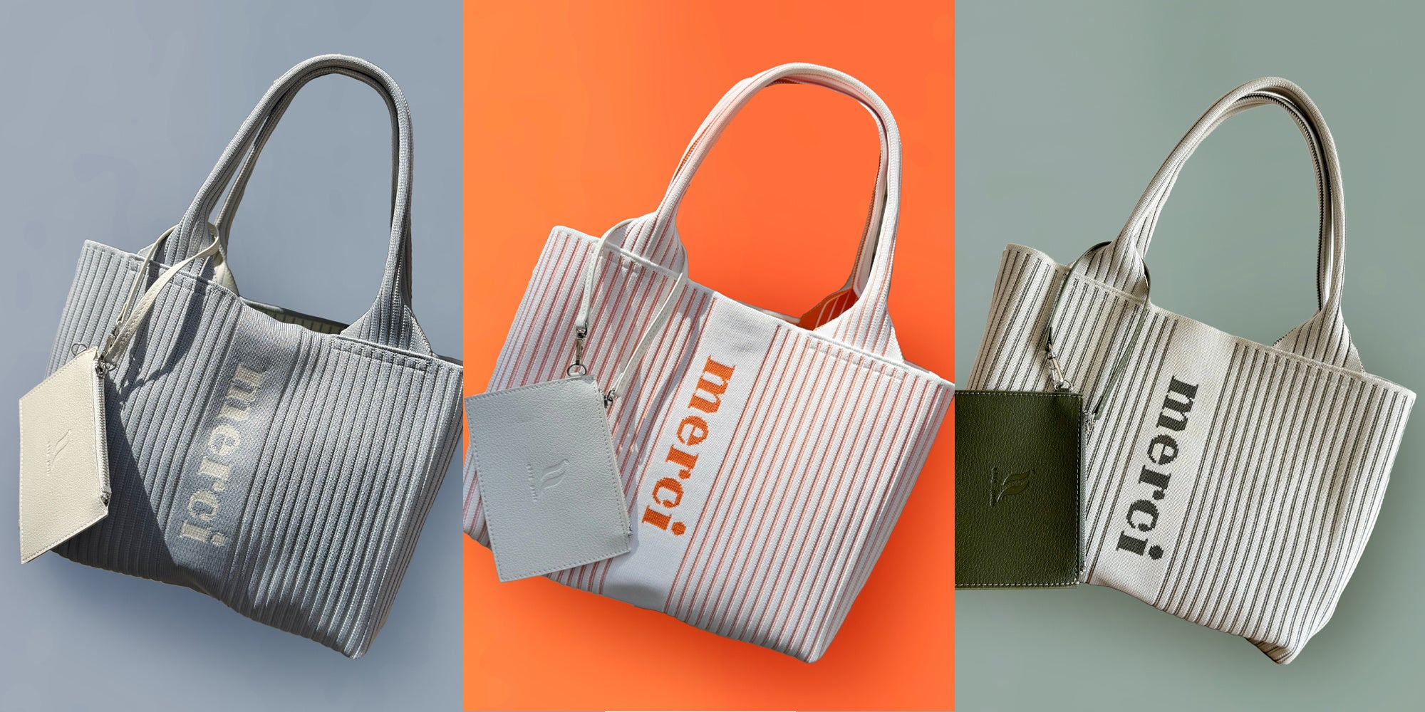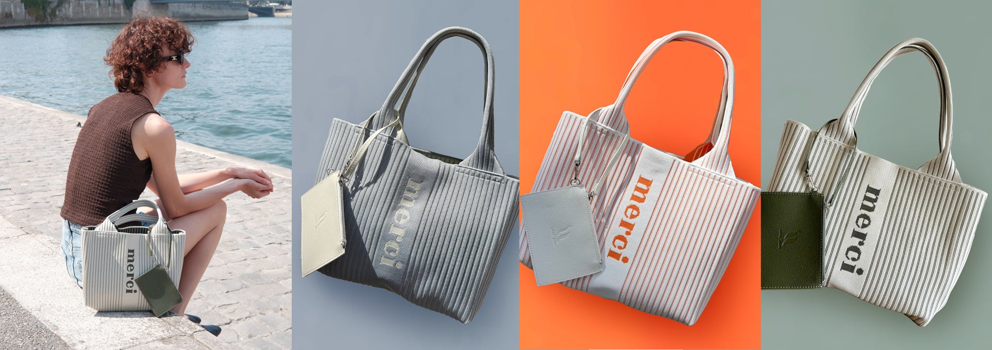 「merci(メルシー)」がプリントされた、気持ちも装いも華やぐバッグ