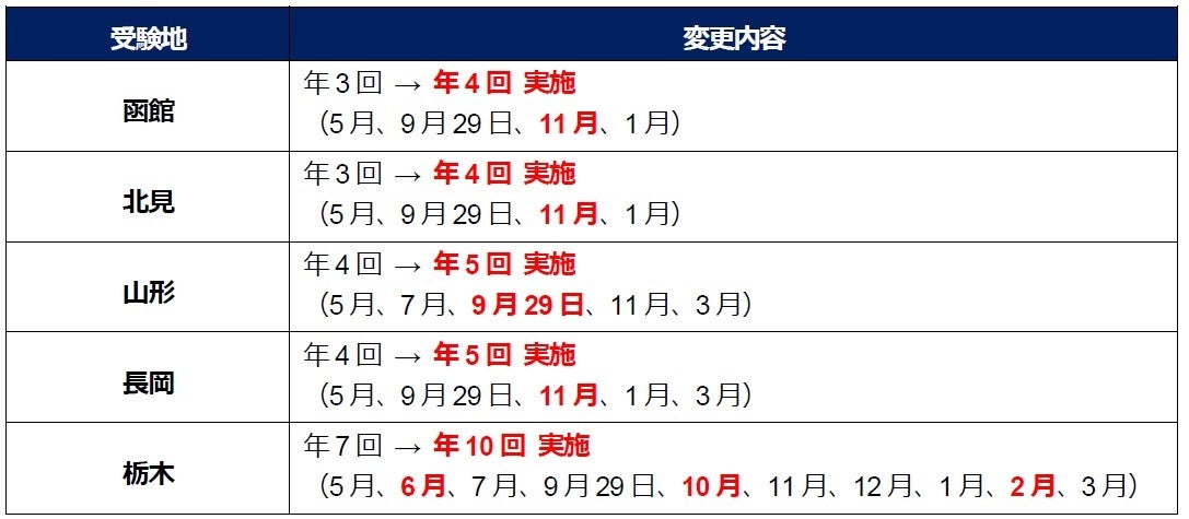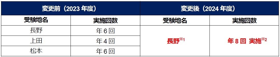 ※1 各実施回、長野エリアと松本エリアに試験会場を設置
