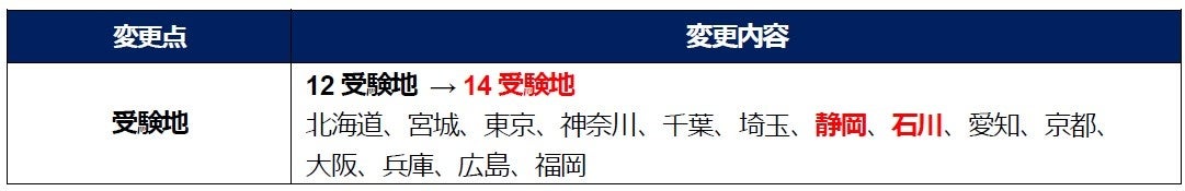 変更の詳細については次の通りです。TOEIC L&R公開テストでは、受験地の統合を行うとともに一部受験地にて実施の増回をします。TOEIC Bridge L&R公開テストでは、全実施回にて奈良を追加。また、TOEIC S&W公開テストでは、2021年4月以降実施を休止していた石川と静岡での実施を再開し、それに合わせて両受験地では、2024年5月よりTOEIC Bridge S&W 公開テストを初めて実施します。