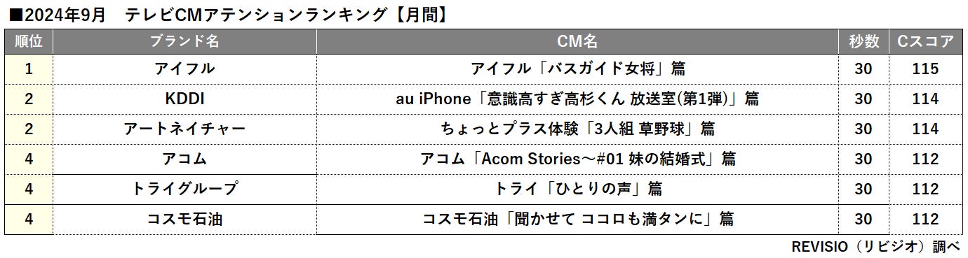 最新の「テレビCMアテンションレポート」では、9月の週間ランキングも公開しています。