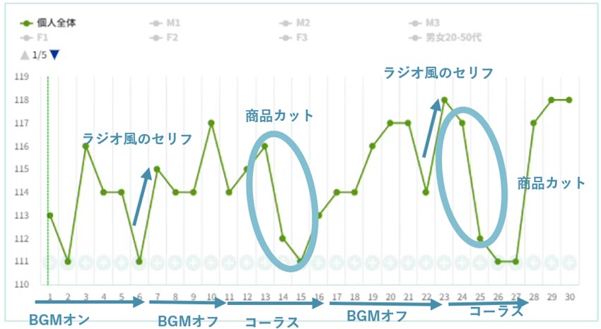 【終盤】『トゥトゥルトゥトゥ』というラップの一節のようなセリフの挿入が注視を増加させ、注視が多いタイミングでのブランドロゴの露出にも成功。