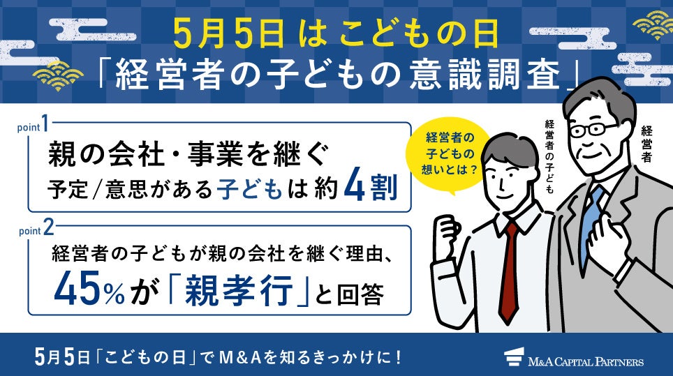 5月5日、こどもの日をきっかけに、経営する会社/事業を引き継ぐかどうか、あるいはもう少し踏み込んだ部分についても、少しずつお互いの考えを話し合ってみるのはいかがでしょうか。