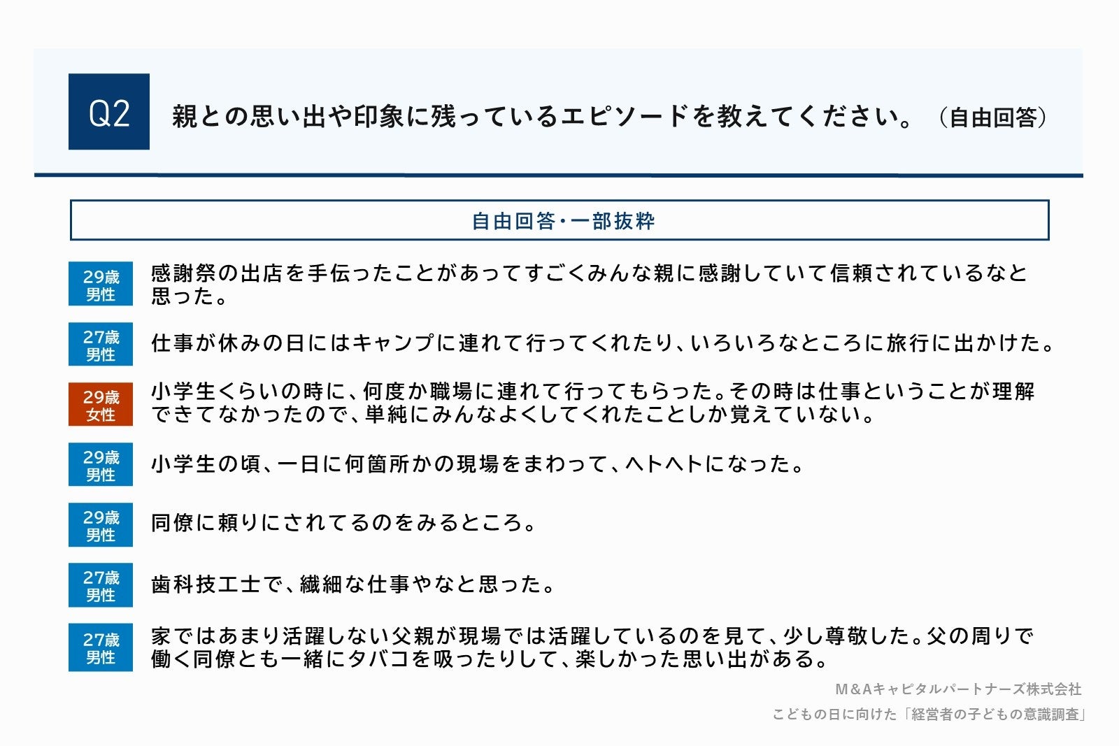■Q2. 親との思い出や印象に残っているエピソードを教えてください。(自由回答)