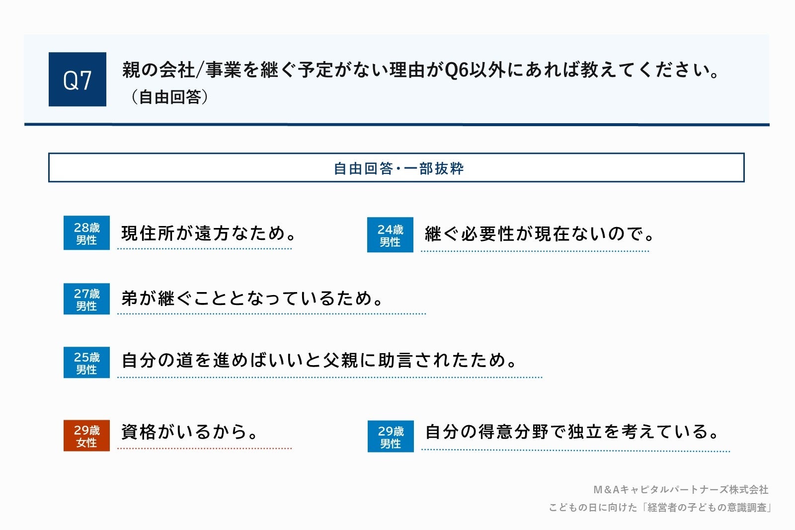 ■Q7.親の会社/事業を継ぐ予定がない理由がQ6以外にあれば教えてください。(自由回答)