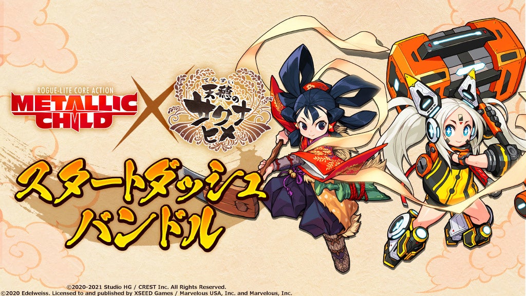 株式会社CRESTは、ローグライト・コアアクションゲーム『METALLIC CHILD』(以下『メタリックチャイルド』)用追加ダウンロードコンテンツ(以下「DLC」)において、『天穂のサクナヒメ』コラボでお送りするDLC第1弾『米とコア』 を本日発売。併せて発売記念セールを開催することをお知らせいたします。