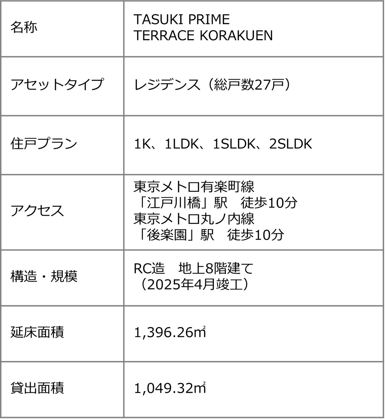 株式会社タスキホールディングス(本社:東京都港区、代表取締役社長:柏村 雄、以下、当社)のグループ会社である株式会社タスキ(本社:東京都港区、代表取締役社長:村田浩司、以下、タスキ)は、「TASUKI PRIME FUNDS」の第3号案件として、オフバランススキームの信託受益権型私募ファンドを組成いたしましたので、お知らせします。