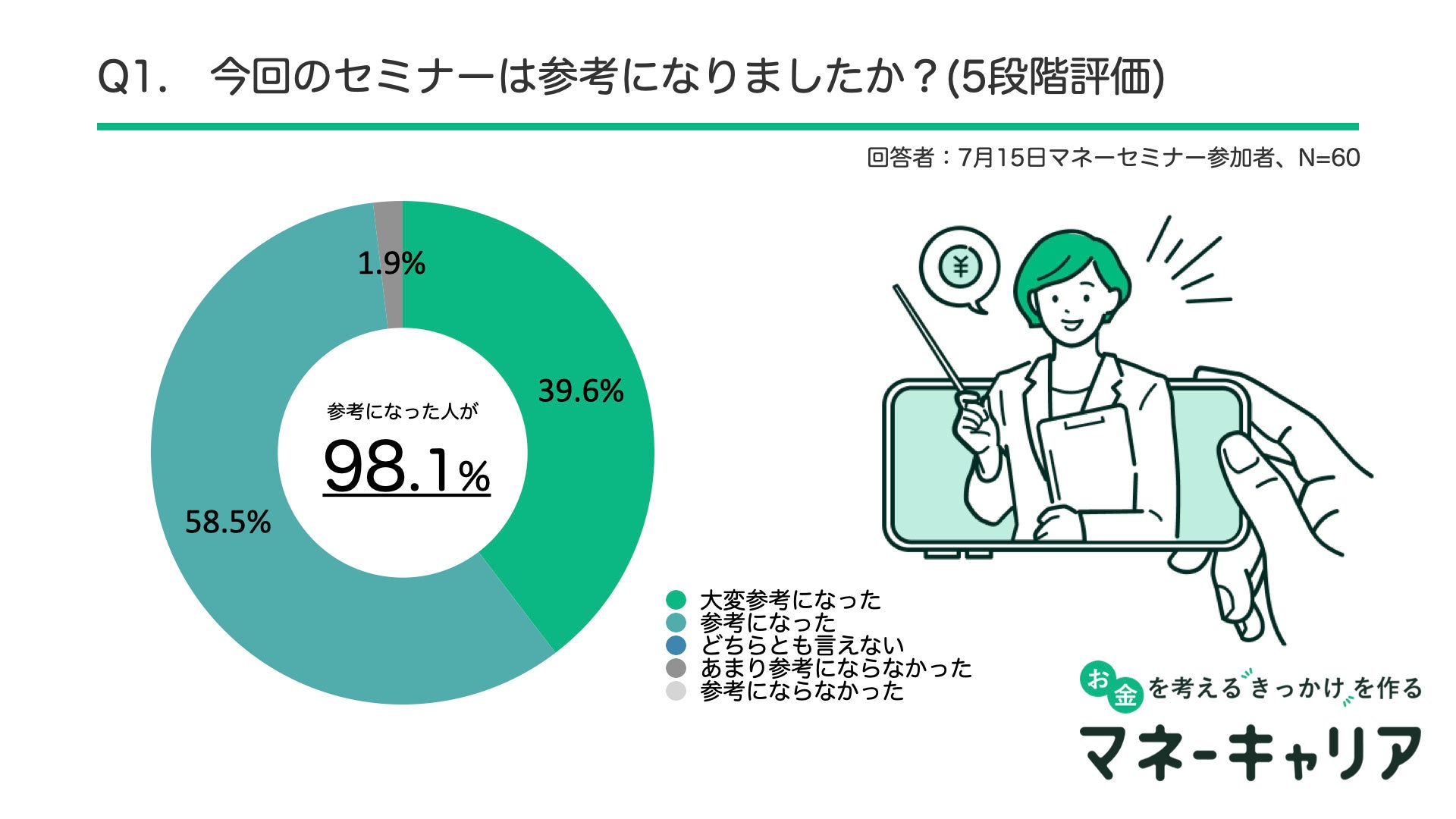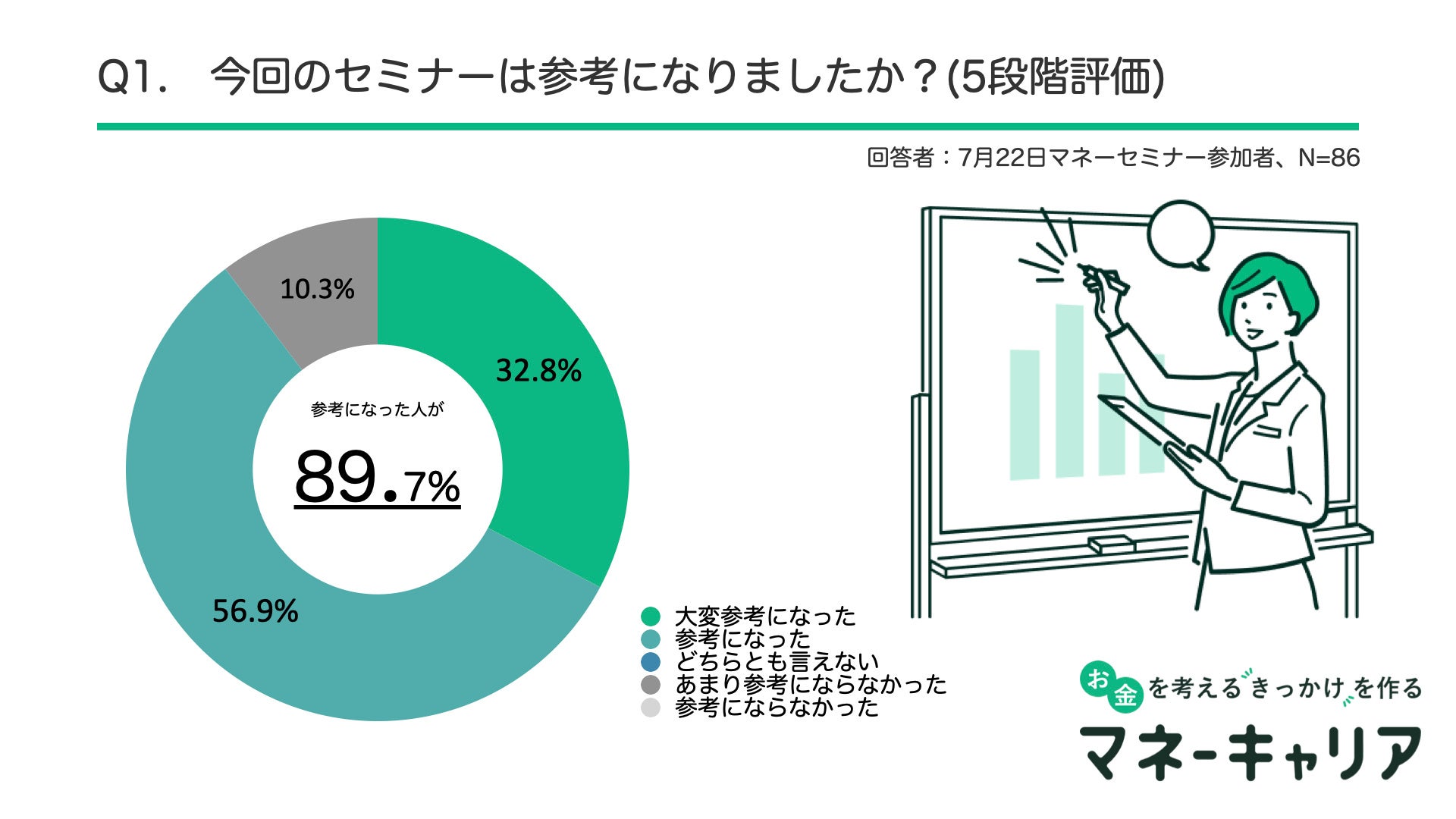 【開催レポート】7月実施のオンラインマネーセミナーにて実施した4つのセミナーで「参考になった」と答えた人が約9割以上に!