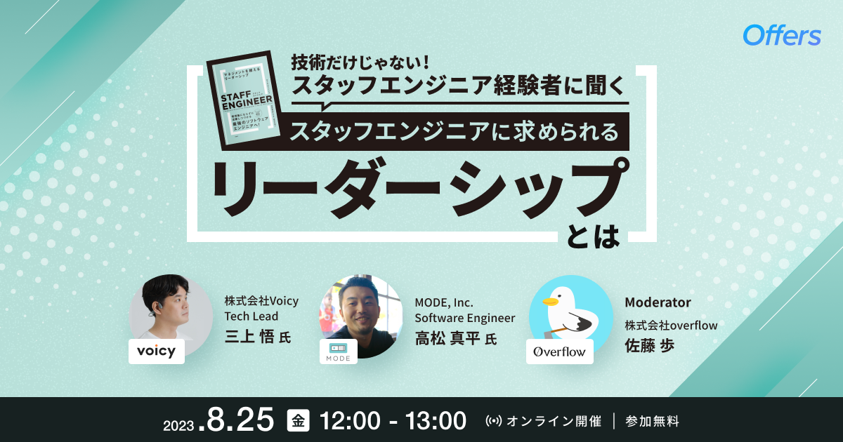 8/25(金)12:00~「スタッフエンジニア経験者に聞く 技術だけじゃない スタッフエンジニアに求められるリーダーシップとは」を開催