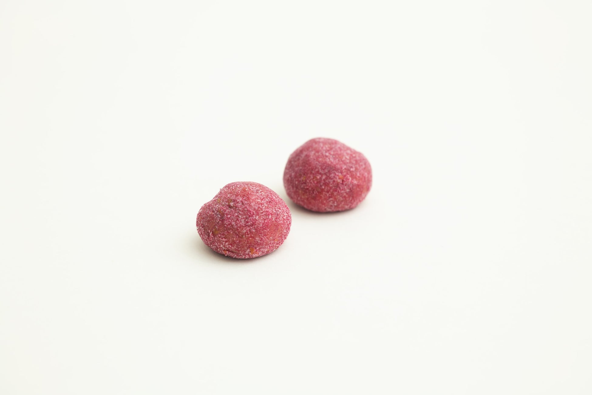 企画会議「ONIversal summit」での話し合いの内容を受け、クラッシュしたロースト大豆を練り込み、見た目はコロンと丸い一口サイズでさくっほろっとした豆クッキーを開発しました。4種類のカラフルな味付けで、鬼もヒトも一緒に宝石を選ぶかのように見た目も楽しめるクッキーです。
