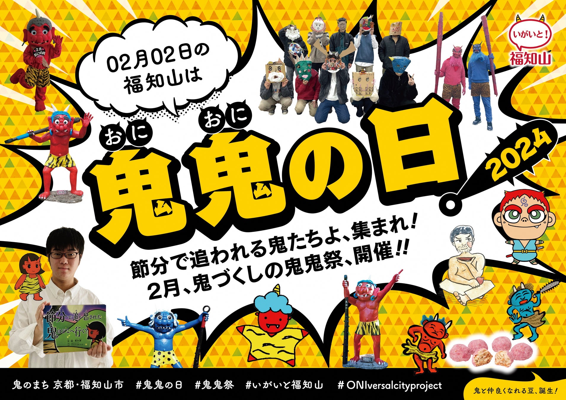 京都府福知山市は、「02」(オニ)の語呂合わせで、2月2日を「鬼鬼の日」として発信し、鬼鬼の日の周辺で鬼にまつわる企画を集めたプロジェクト「鬼鬼祭」を開催します。コンセプトは、大江山鬼伝説のある「鬼のまち」らしく、「節分で追われる鬼たちよ、集まれ!」。4年目となる今回は、鬼にゆかりのある地域や団体、また福知山公立大学生によるユニークな企画が満載です。まちぐるみで鬼を盛り上げる、鬼づくしの「鬼の祭典」、開幕します!