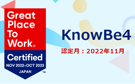 東京(2022年11月18日発)- Great Place to Workジャパンは、認定ランキングにエントリーした企業へアンケート調査を実施し、調査結果が一定水準を超えた企業を1年間「働きがいのある会社」として認定しています。このたび、Great Place to Workジャパンは、セキュリティ意識向上トレーニングとフィッシングシミュレーション・分析を組み合わせた世界最大の統合型プラットフォームのプロバイダーであるKnowBe4を「働きがいのある会社」に認定しました 。
