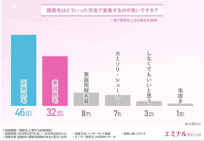 今回、「顔脱毛」に関する実態調査を実施した、エミナルクリニックは、