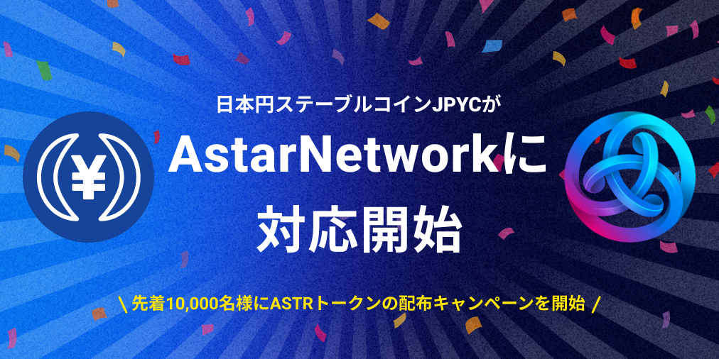 日本円のステーブルコインのJPYC|Astar Networkに対応!チェーン対応記念として、先着10,000名様にASTRトークンの配布キャンペーンを開始