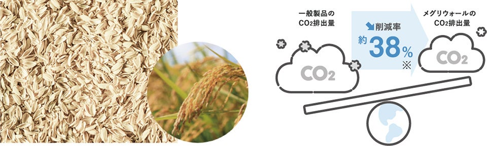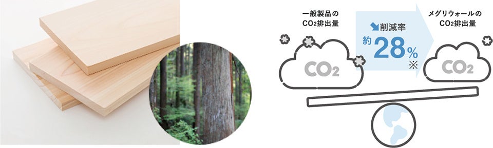 ※上記数値はメグリウォールの代表商品と一般的なビニル壁紙とを比較して削減率を算出しています。上記数値は算定値であり、保証値ではありません。