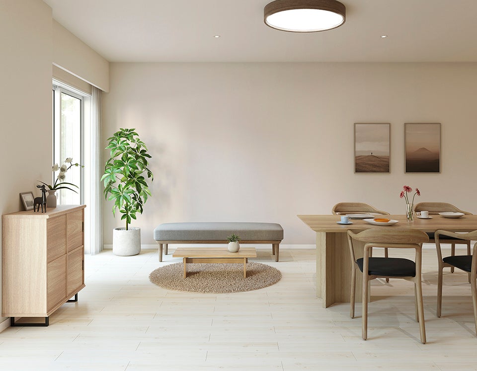 樹脂の端材やお米の籾殻、ヒノキの端材といった、廃棄処分されることが多い素材を再利用した低環境負荷商品です。リサイクル材を使用することで、資源の有効活用に加えて、ライフサイクルにおけるCO₂排出量を削減します。立体感のある質感で、デザインとカラーリングにもこだわった壁紙シリーズです。