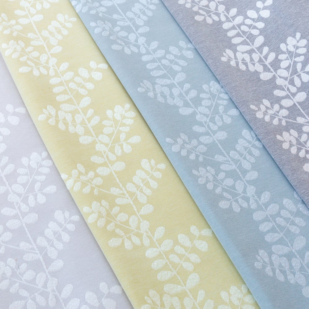 北欧テイストの植物デザインカーテン。立体感のある柄をジャカード織で表現した、柔らかな印象のドレープカーテンです。やわらかで明るい北欧カラーがナチュラルな空間にマッチする1枚。