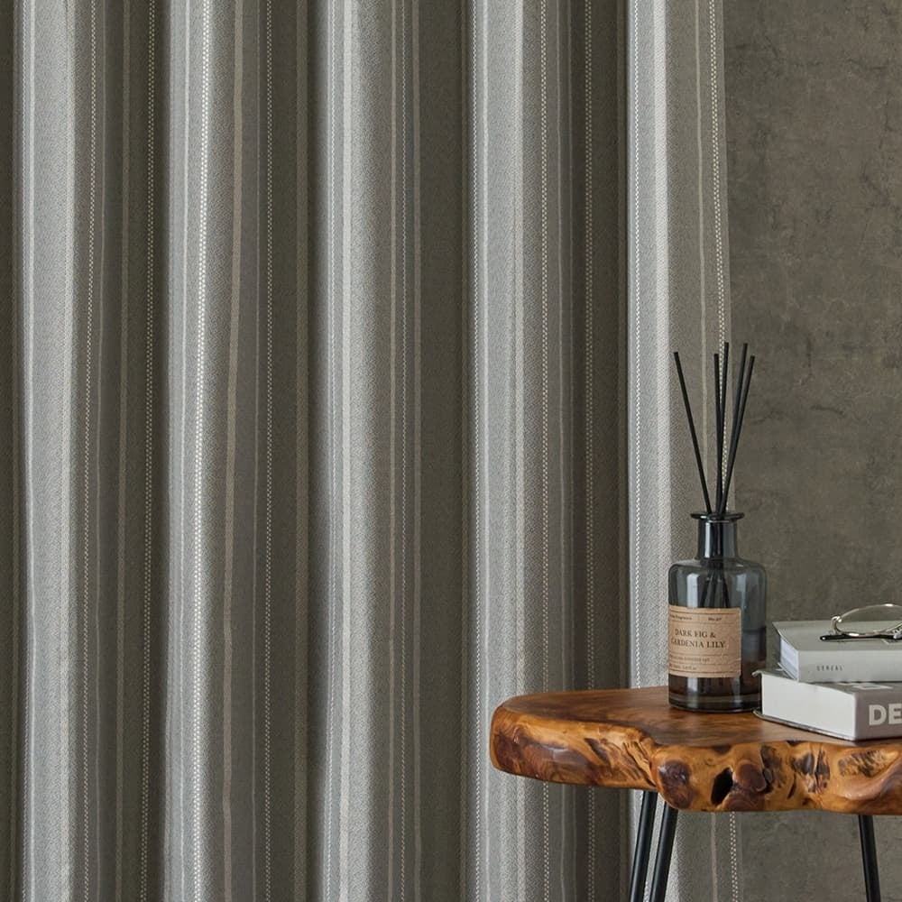 艶やかなストライプが部屋の印象を引き締めるモダンカーテン。 大人のカジュアルさとスタイリッシュさが上手く融合されたちょうどいい1枚です。落ち着きのあるソフトなカラーリングも魅力。